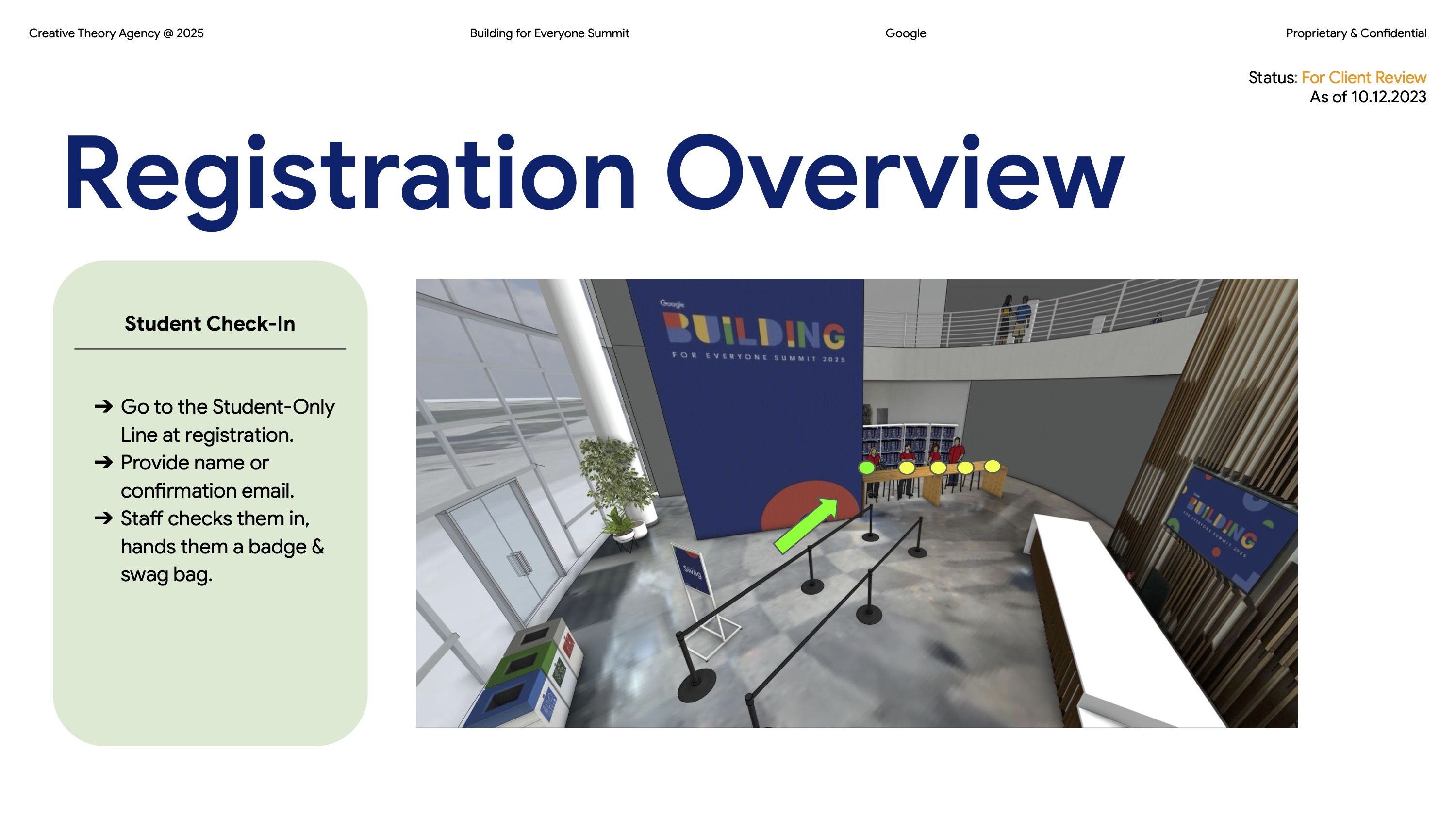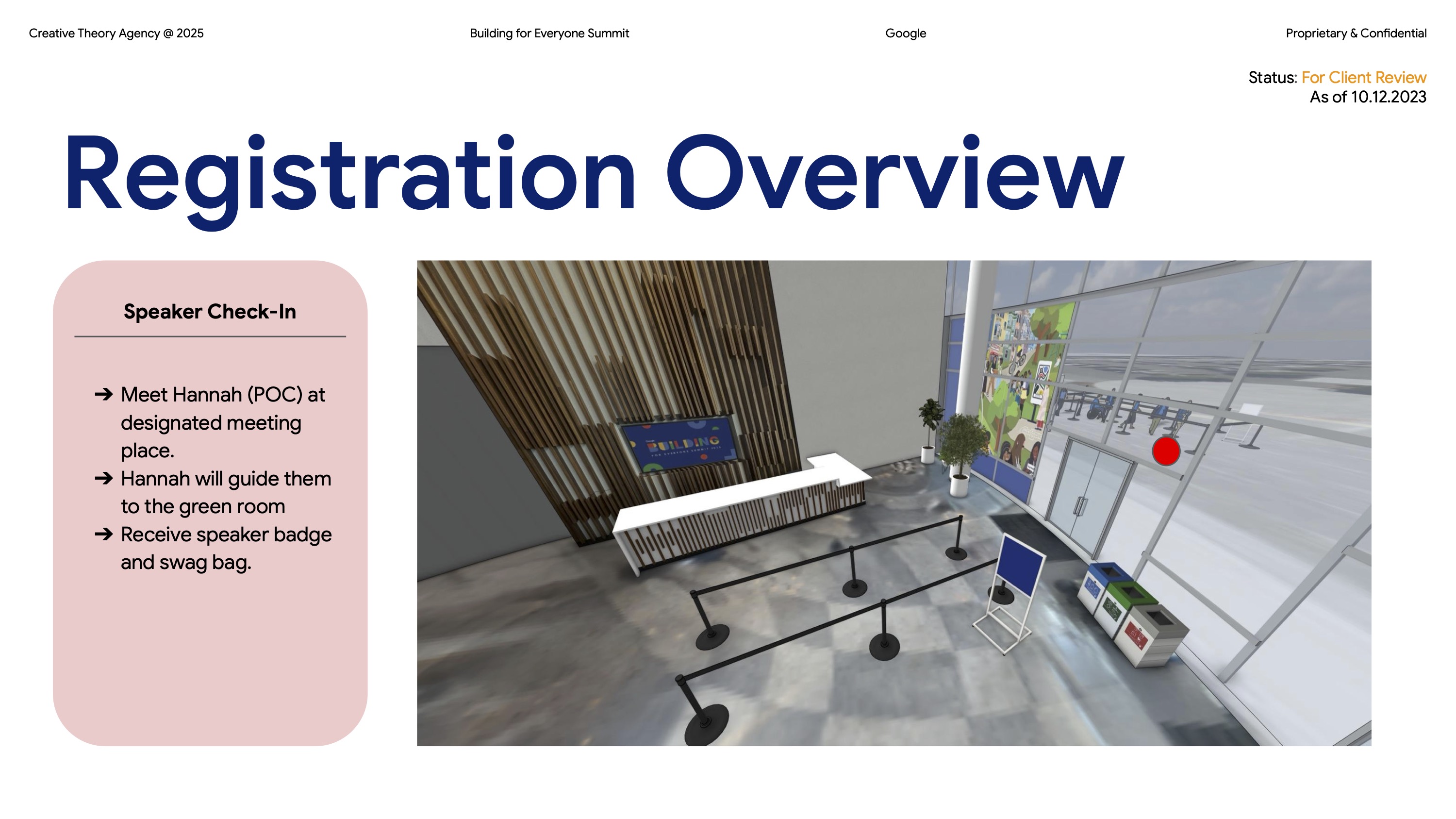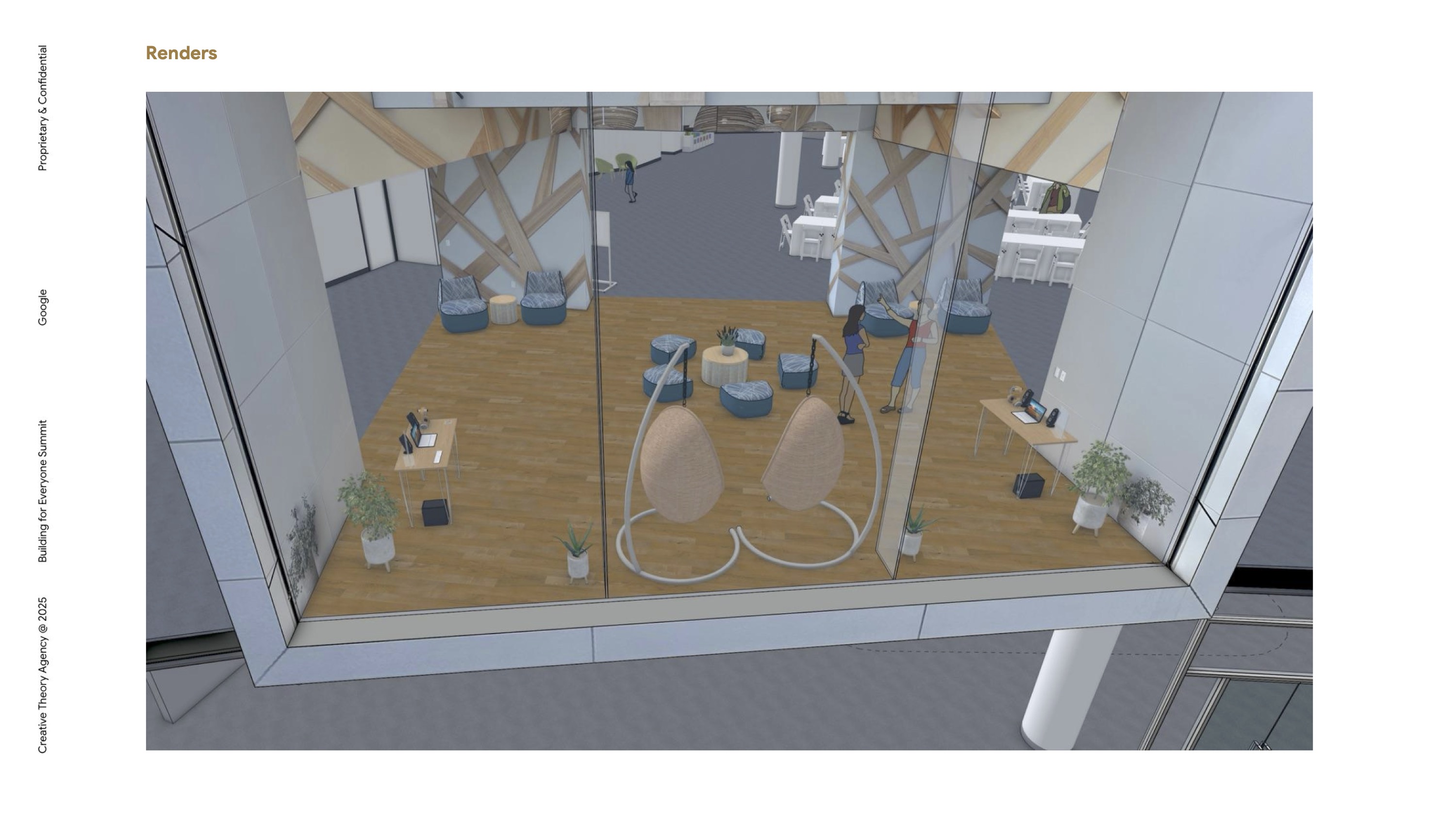 A scale model allowed me to asses every pathway for wheelchair clearace and account for every braille placard we would need and where it would be displayed. The clarity of my renderings tailored precisley for each purpose empowered Creative Theory Agency to clearly communicate high-fidelity information to every party.