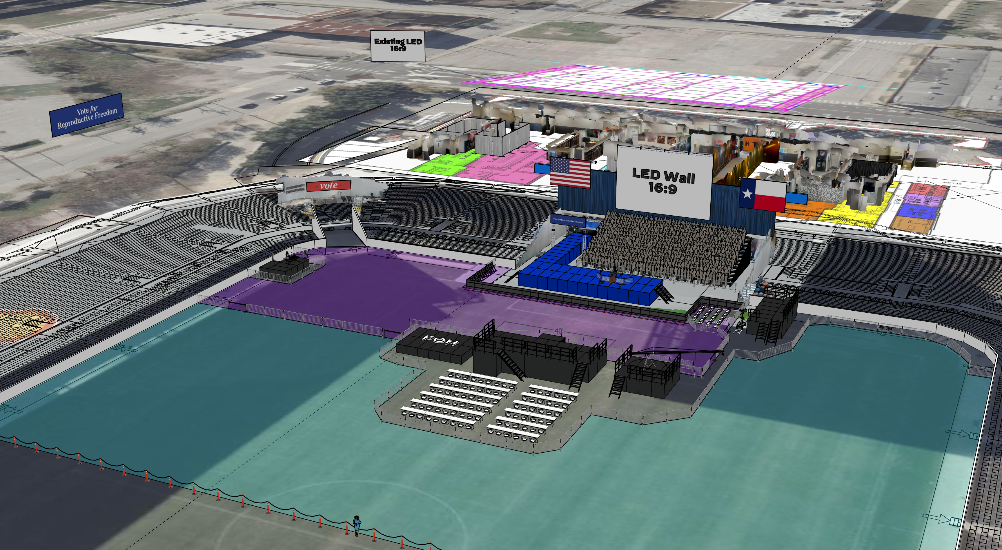 I crafted precise 3D models of event sites and production plans, enabling clear visualization and seamless collaboration among diverse stakeholders, including campaign management, design and creative teams, the U.S. Secret Service, local stakeholders like fire, police and venue, media logistics teams. Conducted detailed venue surveys to evaluate attributes and constraints, reconciling competing priorities to create actionable, efficient plans and communicate those plans with high-resolution and fidelity.