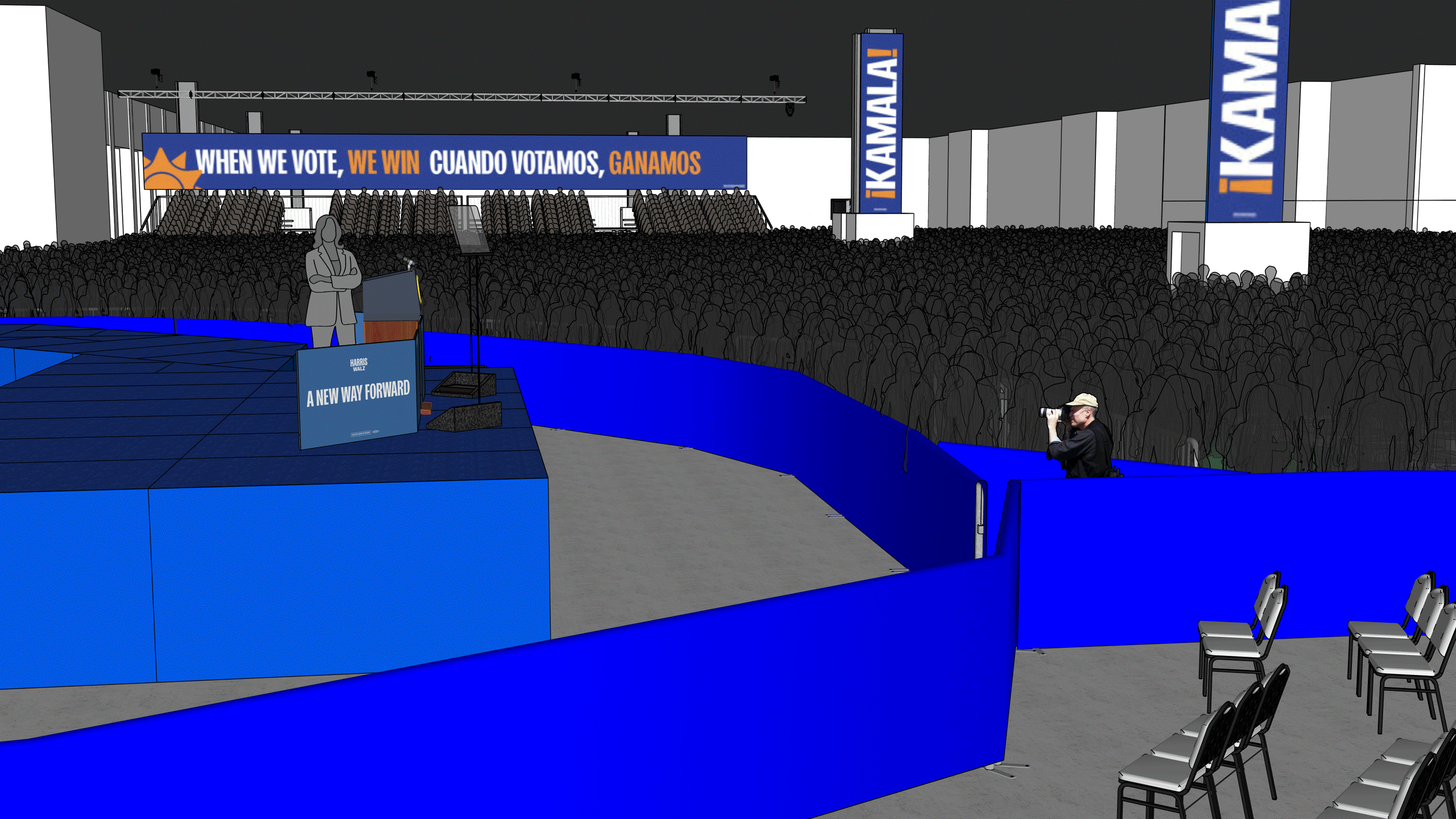 I served as Production Lead for Kamala Harris's 2024 Presidential campaign. I was entrusted with designing and executing some of the largest and most complex events of the campaign season including rallies in arenas, amphitheaters, and a stadium.